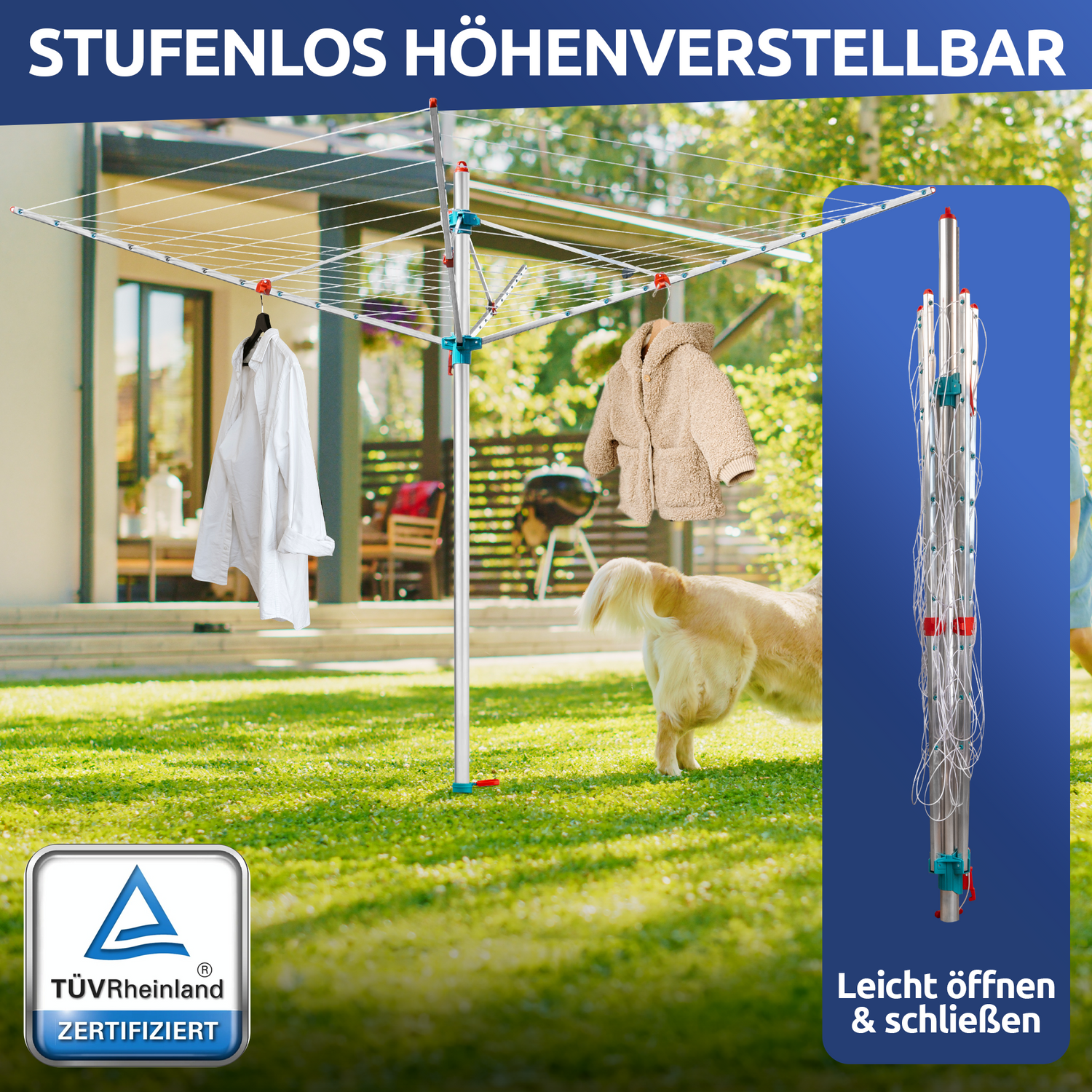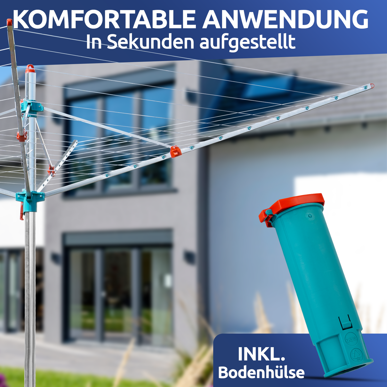 STAHLMANN® Wäschespinne – einfacher Aufbau mit Bodenhülse, sofort einsatzbereit